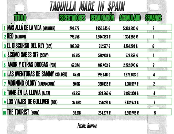 InicioCineResultados de la taquilla “made in Spain”Diana Mangas·6 febrero, 2011SEMANA DEL 28 AL 30 DE ENERO DE 2011