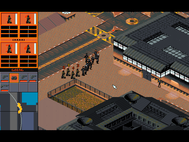 Entre los éxitos se encontraba en 1993‘Syndicate’. En un futuro cercano, a mediados del siglo XXI el mundo estará dirigido por poderosas empresas privadas (bueno, a día de hoy ya es así pero por ahora no hay escenarios a lo Blade Runner). Cada empresa compite por todo el mundo a base de extorsiones, asesinatos, terrorismo, espionaje industrial… todo muy lícito, vamos, y también muy encubierto, pues todo ello se lleva a cabo con un grupo de agentes de la corporación que son los que van repartiendo leña, los cuales nosotros tendremos que gestionar, armar y reformar (a base de implantes biomecánicos) con los fondos ganados por cada misión, ya que somos, y no me digáis que no tiene gracia, los directores de marketing de la empresa.